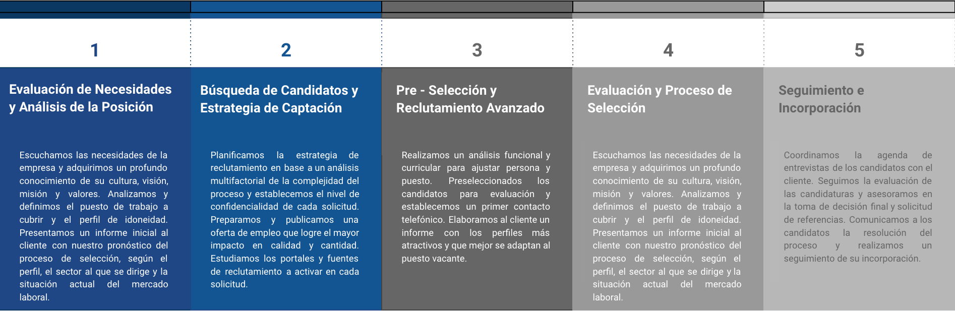 Nuestros servicios de reclutamiento, selección de personal, headhunting y assessment center te permitirán encontrar a los candidatos perfectos para tu equipo, te acompañamos en todo el proceso: desde la definición del perfil hasta la incorporación del candidato, proporcionándote un proyecto a medida y total tranquilidad.